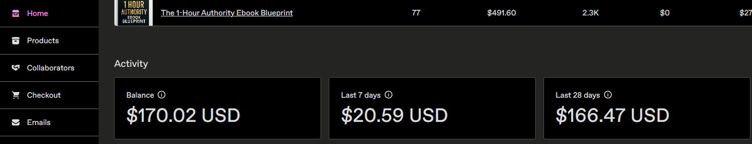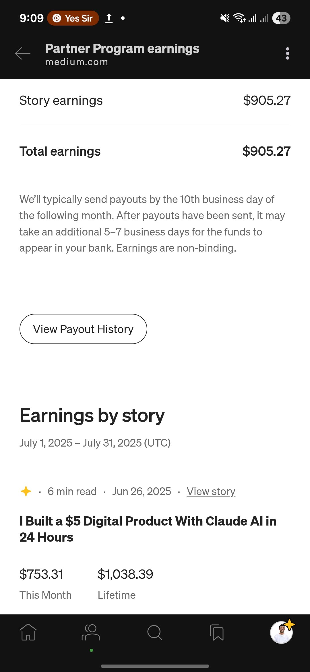 Screenshot of my earnings for a month, close to $1k, leveraging this exact blueprint.